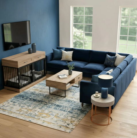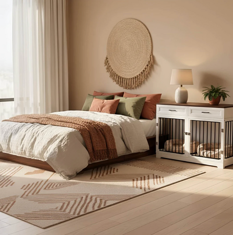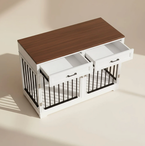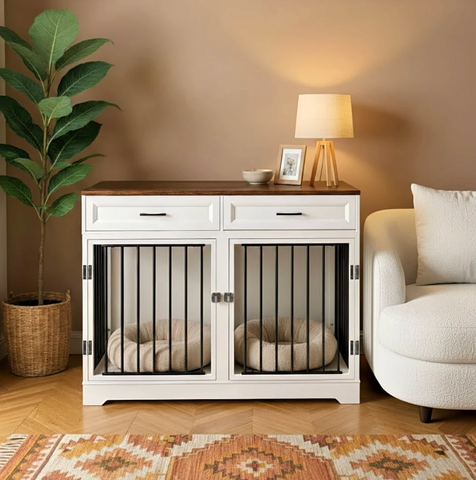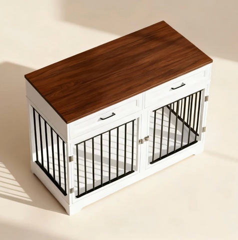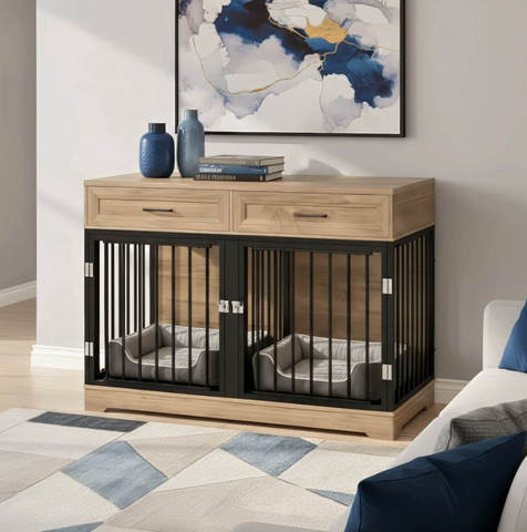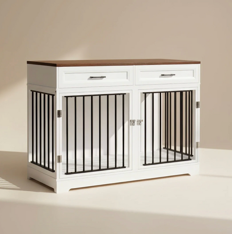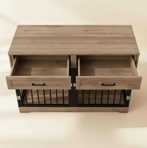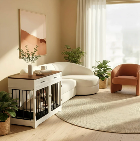 The Elara Crate blends soft lines, integrated storage, and a spacious dual-compartment layout to provide a secure, comfortable retreat for your dog while serving as a refined furniture piece. Its elegant silhouette and wide top surface allow it to function as a sideboard or accent console, seamlessly complementing modern, transitional, or farmhouse interiors.